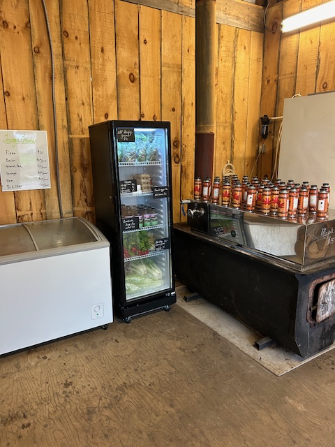 Last week, we were so ready for market season that we decided to open a physical farm stand on the property. We have the store stocked with a little selection of everything that we have to offer. We top up the fridge and freezer throughout the day. This ensures there is always something fresh available.