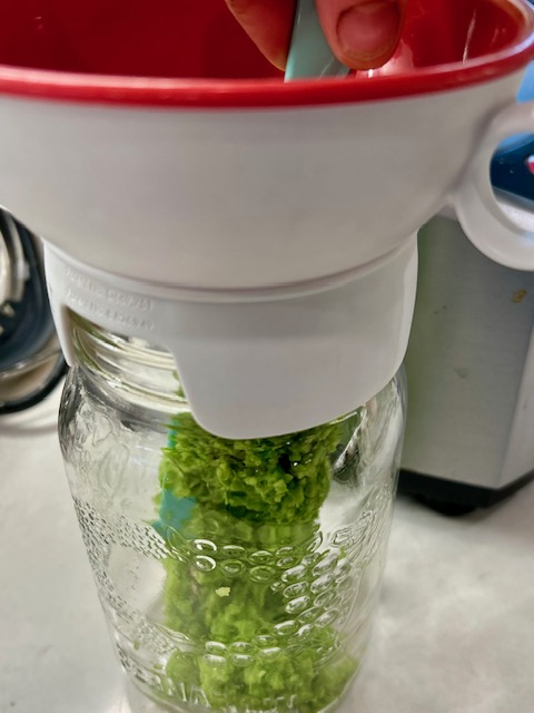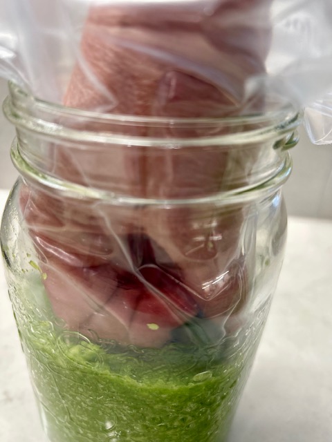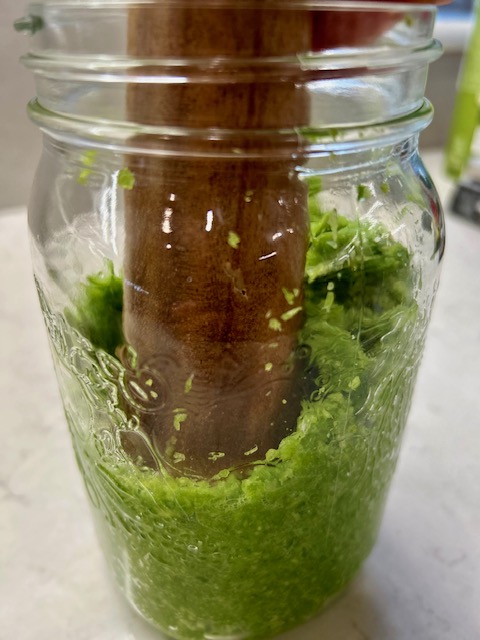 Transfer to mason jar then pack it down so that there are no air gaps and the juice is pooling on top (if there are a few little air gaps, press down from the middle with a spatula and then tamp again)