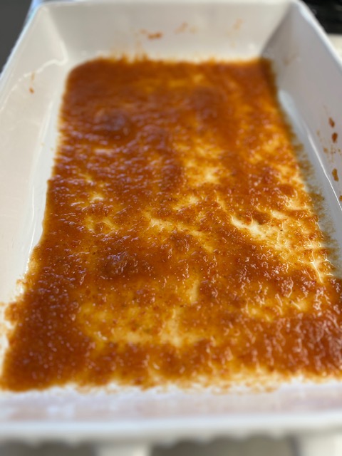 Remove them from the oven when both sides are nicely cooked and pre-heat the oven to 425. If you have convection mode, use it. If not, no worries, it will still be delicious!