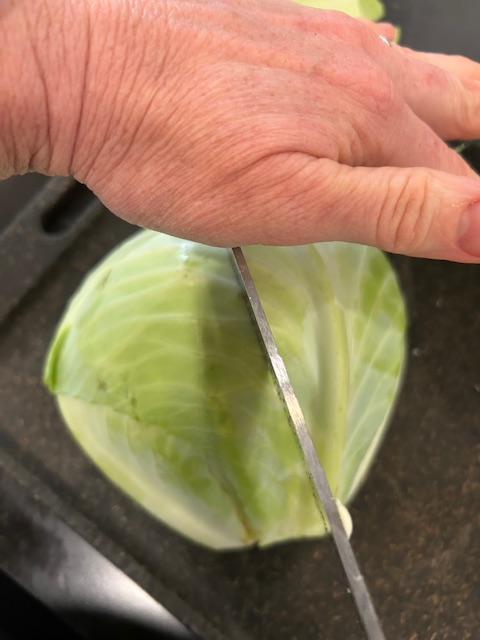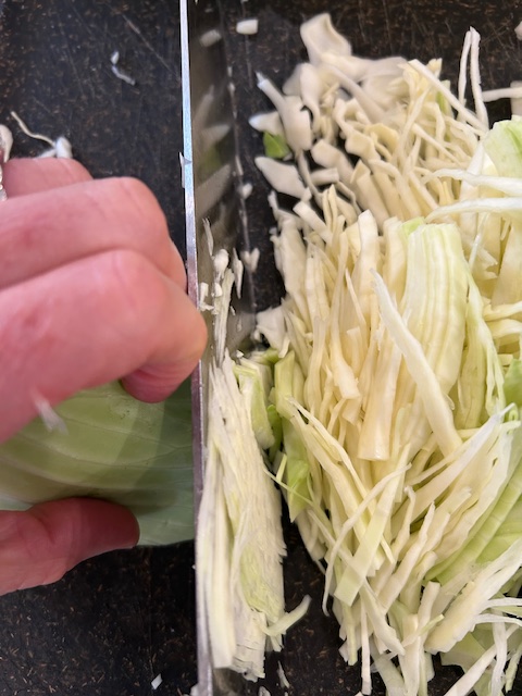 Thoroughly rinse your cabbage, remove the core and finely slice.