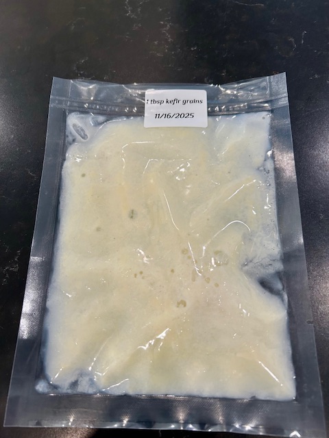 - If you need a break from kefir, place your grains in a food safe bag, cover them in milk, remove excess air and freeze them. They will be ready and waiting when you need them again:).
